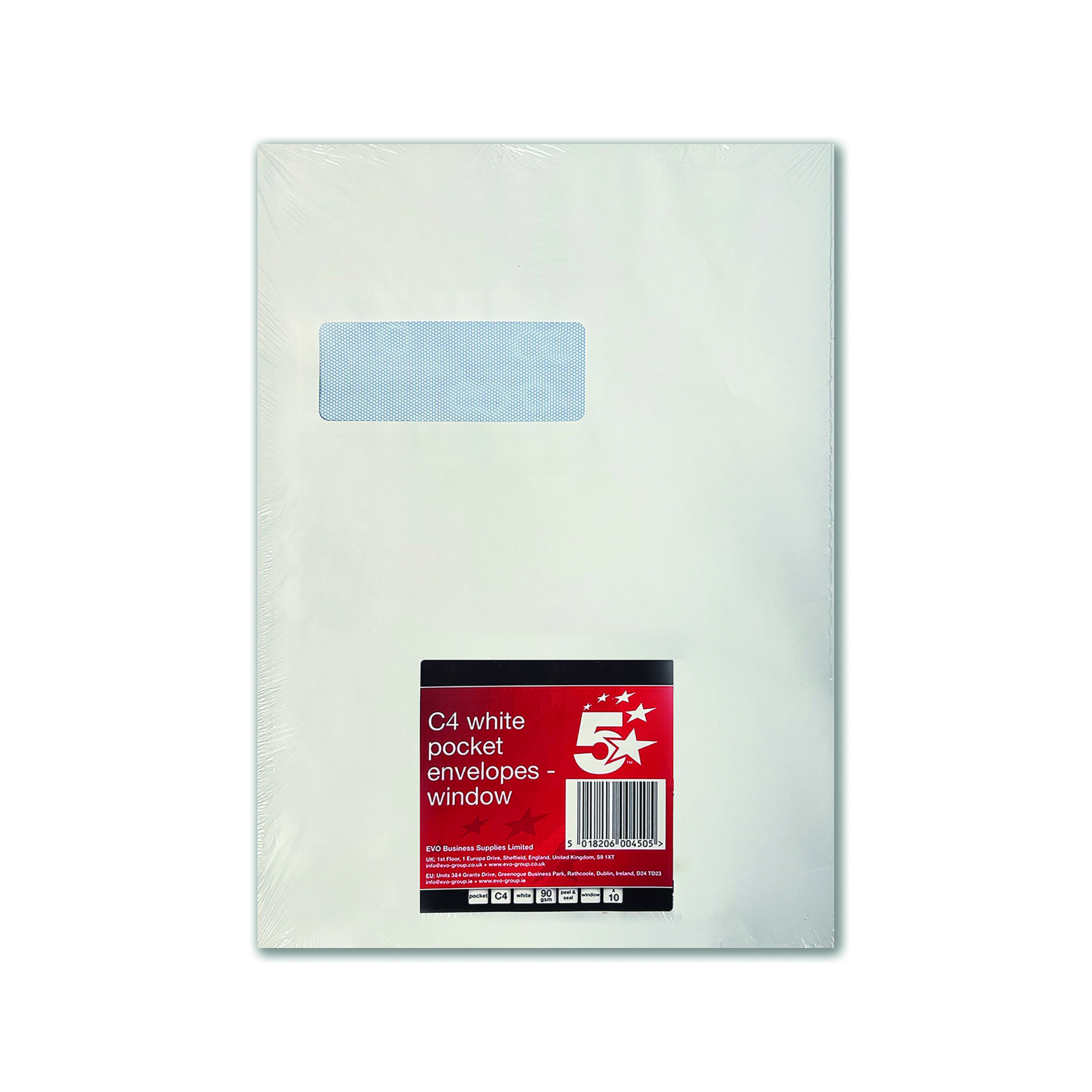 5 Star C4 Window Envelope Peel and Seal 90gsm White (Pack of 10) 600450