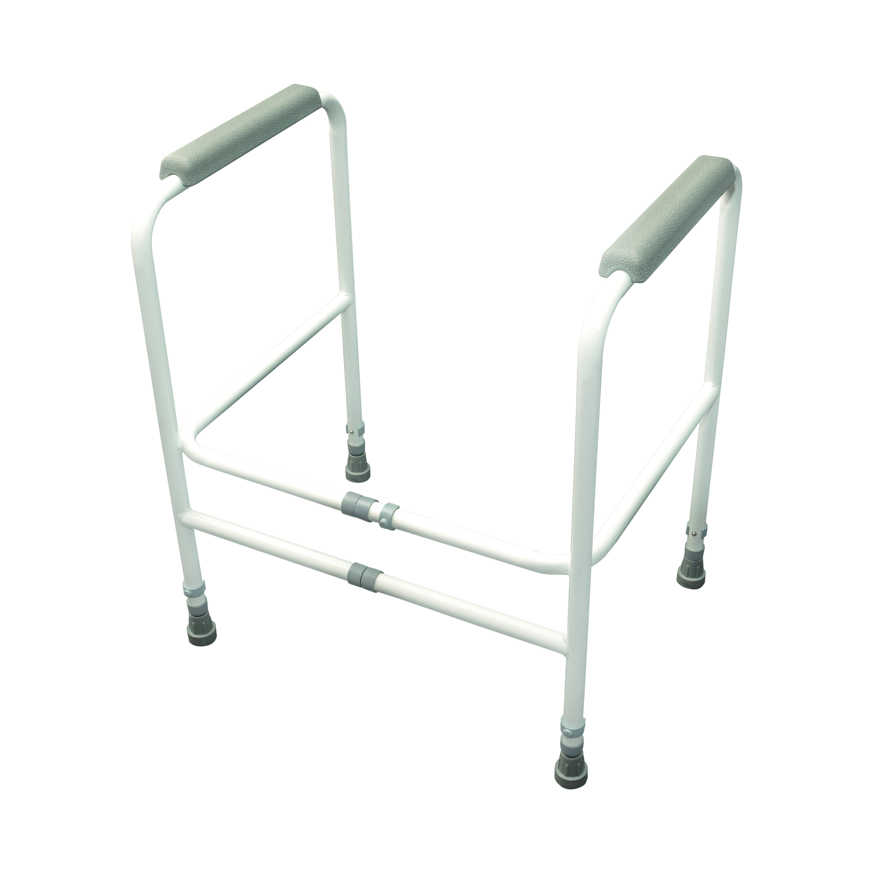 The Broadstairs Toilet Frame is both width and height adjustable, offering maximum flexibility to users. The tubular steel frame conforms to BS 1224. The Broadstairs Toilet Frame can be extended to suit most needs and, if required, a floor fixing kit is available for a more permanent installation. The frame is coated with a tough white polymer finish resistant to staining. Moulded support arms wrap around the frame for maximum strength and grip. The toilet frame dismantles easily for easy storage and transportation.