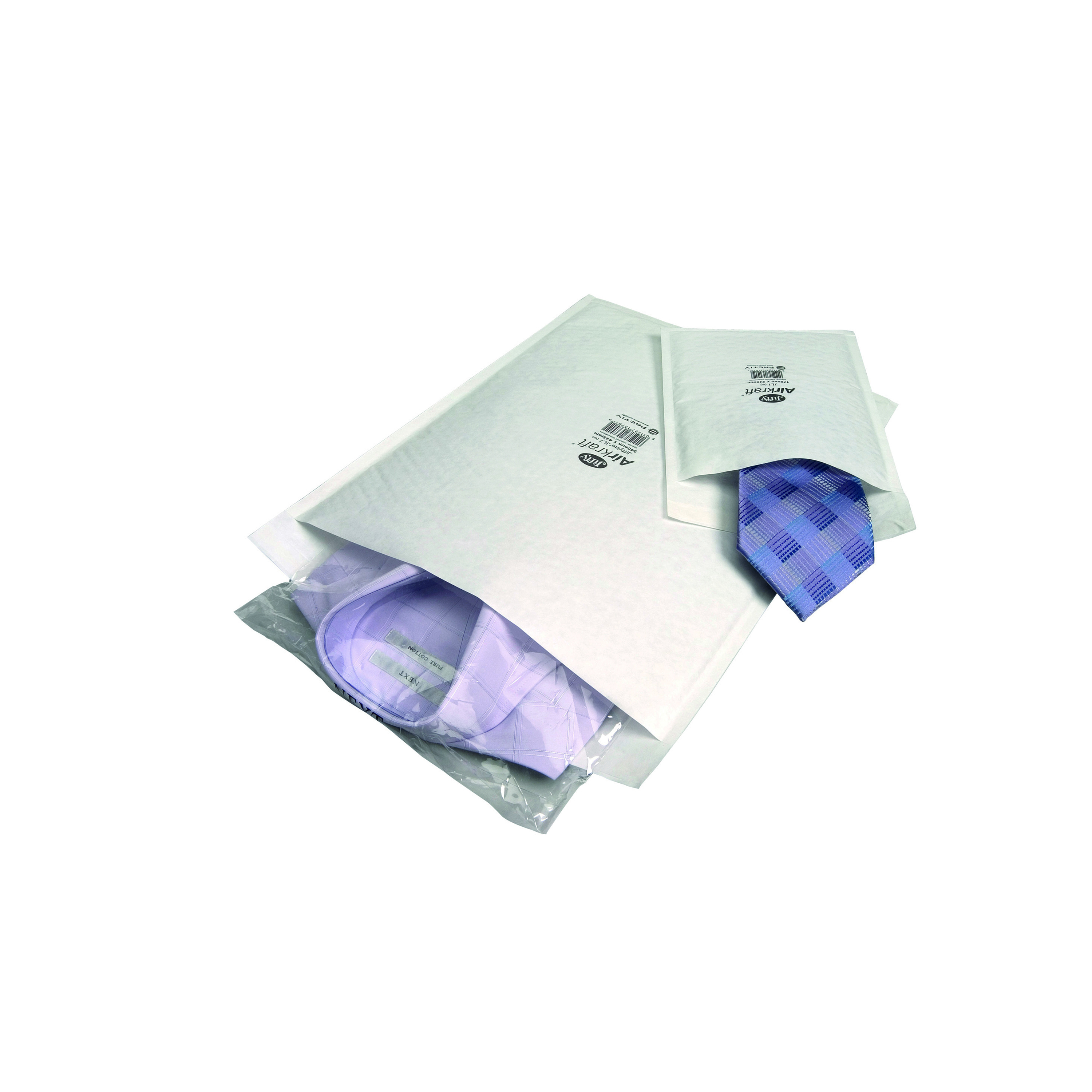 Save on postage costs with this lightweight, bubble lined Jiffy Airkraft mailer. The lining is designed to be puncture and shock resistant to protect delicate or fragile items in transit. The mailer also features a strong, simple self-seal closure. These size 000 white mailers measure 90 x 145mm. This pack contains 200 white mailers. The bubble that inner lines the mailers is produced using a minimum of 30% recycled content.